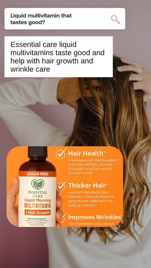 YOU read that right! Our morning liquid multivitamin will support your beauty from within! With clinically shown Lustriva, this delicious liquid multivitamin helps support thicker, fuller hair and smoother skin, while also delivering daily wellness support with essential nutrients to support energy metabolism, immunity, and more.